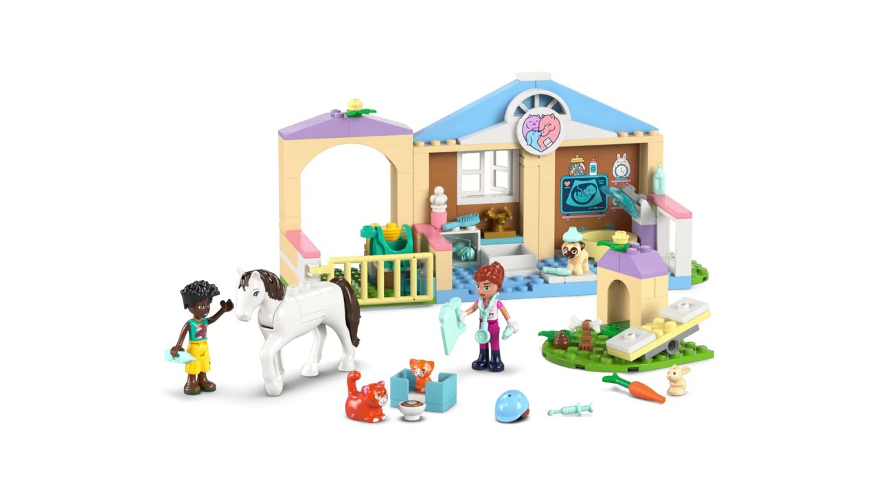LEGO® Friends Ветеринарна клініка (42696) створений для перших сюжетних ігор дітей від 4 років. Набір допомагає малюкам відчути себе ветеринарами, які піклуються про тварин, оглядають їх та створюють комфортні умови для відпочинку.