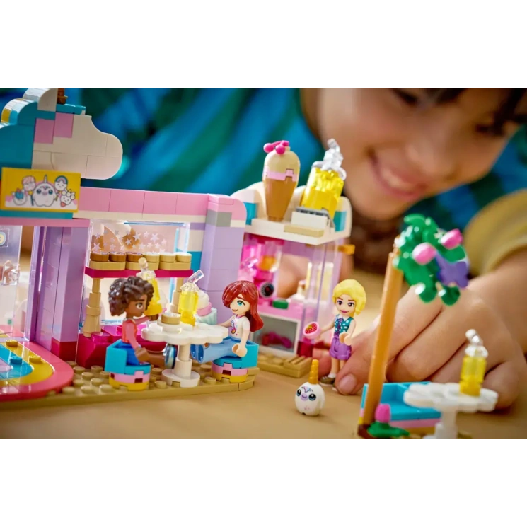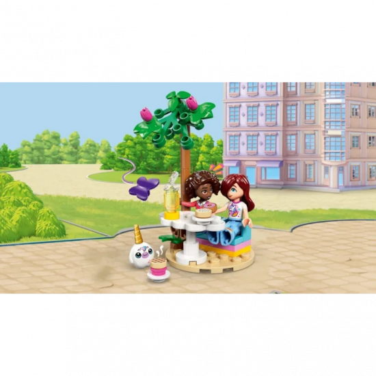 Набір поєднує творчість, атмосферу кав’ярні та яскраву фантазійну тематику, дозволяючи дітям створювати власні історії у світі LEGO Friends.