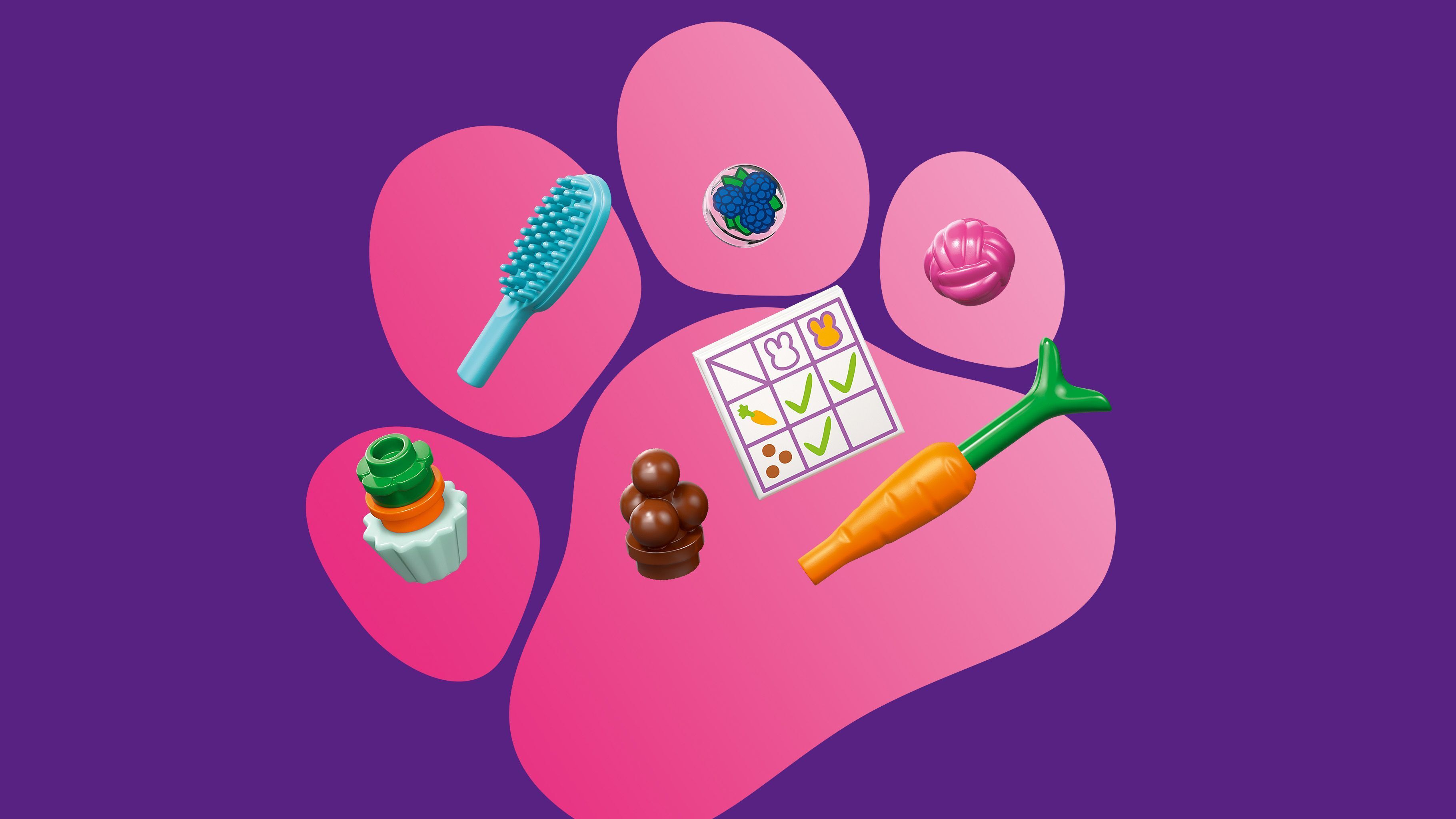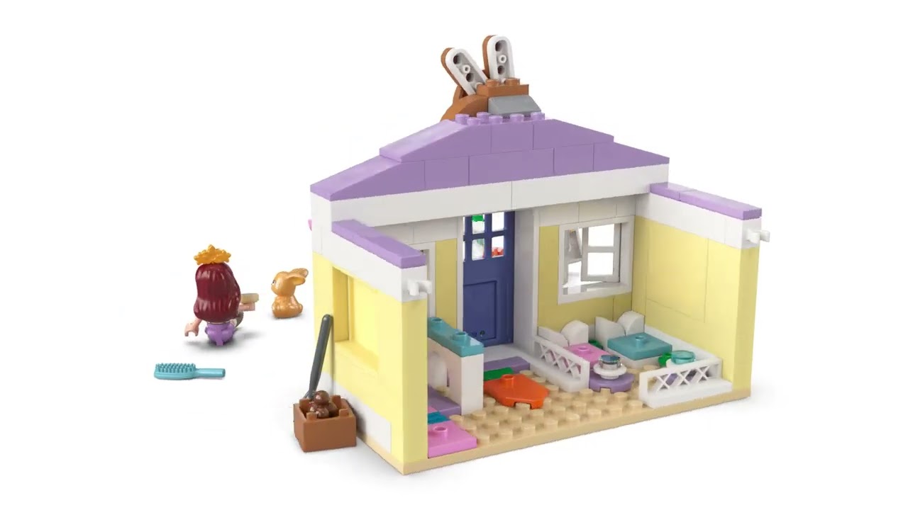 Набір LEGO Friends Готель Bunny у Хартлейк-Сіті (42679) відтворює готель для тварин із спеціальними дверцятами для кроликів, спальною зоною з ліжками, килимком у формі моркви та контрольним списком для реєстрації заселення та виселення. Дві мініляльки можуть виконувати ролі доглядальниць або відвідувачів, а два іграшкові кролики додають живості сценам. Зовні є зона відпочинку з морквяним кексом, де кролики можуть сидіти разом.