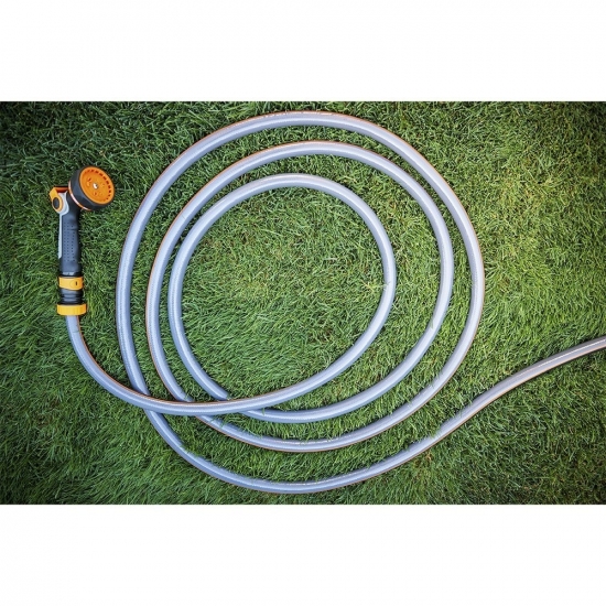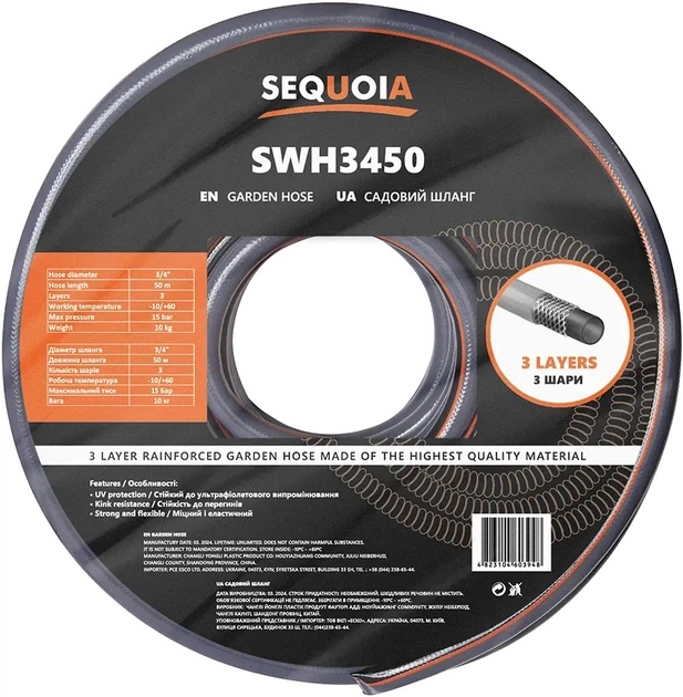 SEQUOIA шланг виготовлений для регулярного використання в умовах змінного тиску та температур. Тришарова структура зменшує ризик перегинів і сприяє рівномірному потоку води під час поливу.