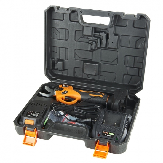 Вага секатора 1,5 кг сприяє стабільному утриманню під час роботи. Комплектний кейс призначений для зберігання та транспортування інструмента і аксесуарів.