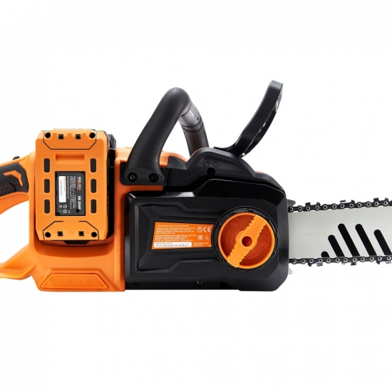 Акумуляторна ланцюгова пила SEQUOIA SBC4016BS-E2W працює від двох акумуляторів 20 В (сумарно 40 В) та оснащена безщітковим двигуном і шиною 40 см з кроком ланцюга 3/8". Швидкість ланцюга до 25 м/с у турборежимі забезпечує впевнений різ деревини середньої та високої твердості. Електронна панель дозволяє обирати між економним, автоматичним та турборежимом, а індикатори показують рівень заряду. Система SDS спрощує натяг ланцюга без інструментів, а комплект включає два акумулятори 4 А·год та подвійний зарядний пристрій. Вага 3,9 кг робить інструмент зручним для тривалої роботи.