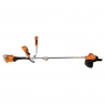 Велосипедна рукоятка з регульованим положенням забезпечує зручний хват і точне керування інструментом при роботі на нерівній поверхні або в обмеженому просторі. Антивібраційна система ефективно гасить коливання, що передаються на руки, зменшуючи втому при тривалому скошуванні.