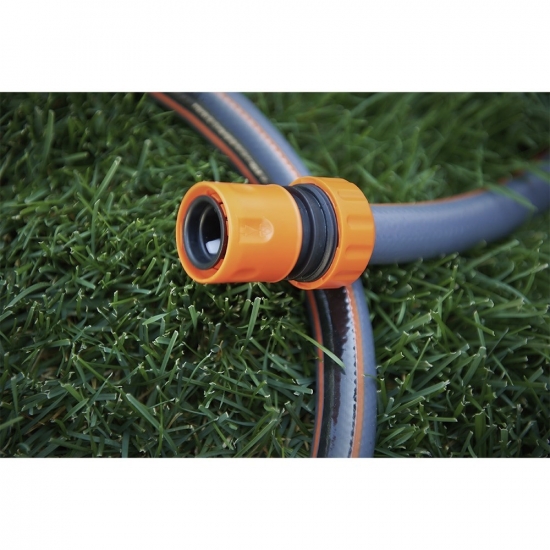 Сумісність зі шлангами діаметром 3/4" робить конектор придатним для більшості стандартних садових рішень. Щільна фіксація знижує ризик протікань і втрати тиску під час подачі води.
