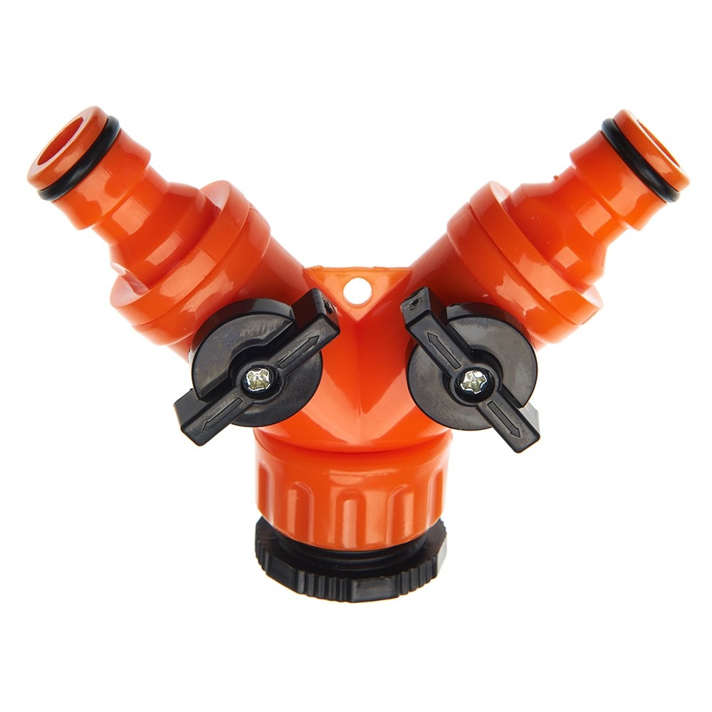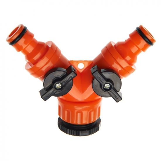 Підключення 1/2"–3/4" сумісне з більшістю стандартних різьбових систем поливу, що робить роздільник універсальним аксесуаром для садових та городніх систем.