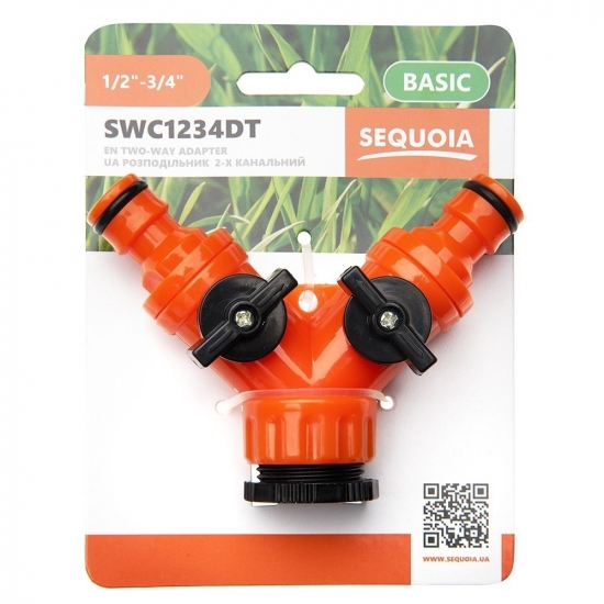 Роздільник SEQUOIA SWC1234DT призначений для одночасного підключення двох шлангів або поливальних ліній до одного джерела води. Кожен вихід обладнаний власним клапаном, що дозволяє регулювати потік окремо або повністю перекривати його.