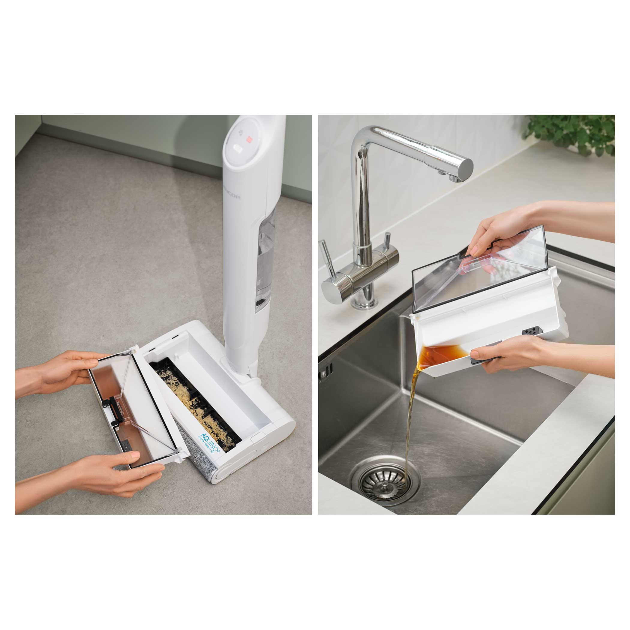 Sencor SVW 3500WH Aquino поєднує обертову систему миття, автономну роботу та функцію самоочищення. Модель призначена для регулярного догляду за твердими підлогами в домашніх умовах.