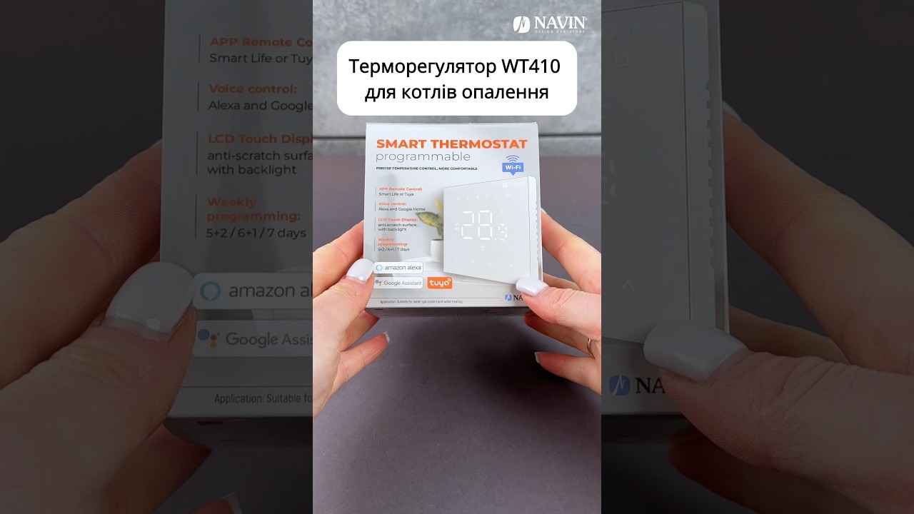 Терморегулятор Navin WT410B-3А поєднує традиційне проводове керування котлом з можливостями сучасного розумного дому, дозволяючи гнучко адаптувати опалення до реального ритму життя без зайвих витрат енергії.
