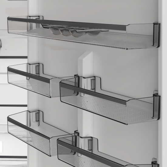 Холодильник з нижньою морозильною камерою. Клас енергоспоживання: A++. Основні характеристики даної моделі холодильників: наявність технології NoFrost, роздільне електронне регулювання температури у холодильній та морозильній камерах, кількість незалежних контурів охолодження - 2, функція швидкого охолодження Super Сooling, функція швидкого заморожування SuperFreezing з автоматичним відключенням, акустичний сигнал та електронний індикатор відчинених дверцят, система попередження про несправності та критичне підвищення температури за допомогою акустичного сигналу та візуальної індикації. Корисний об'єм холодильної камери: 330 л, а морозильної 105 л, також є зона свіжості на 28 л.
