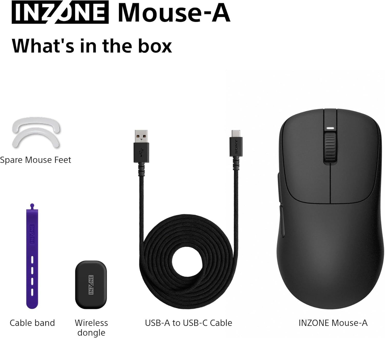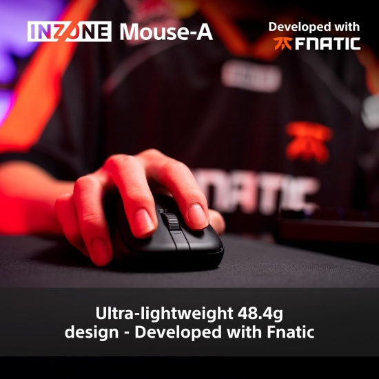 Sony INZONE Wireless орієнтована на кіберспортивні дисципліни та ігри з високою швидкістю реакції. Конструкція поєднує легкий корпус і збалансовану вагу, що дозволяє зберігати контроль під час різких рухів і мікрокорекцій.