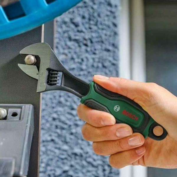 Розвідний ключ Bosch 150 мм із діапазоном 0–24 мм поєднує компактність, міцність матеріалу та точність регулювання. Інструмент розрахований на щоденне використання під час монтажних і ремонтних робіт.