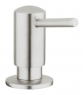 Дозатор Grohe Contemporary об’ємом 500 мл виготовлений з урахуванням щоденного використання в умовах підвищеної вологості та частого контакту з милом чи мийними засобами. Корпус і помпа мають покриття SuperSteel — спеціальний відтінок, що поєднує теплий сіро-сталевий тон з матовою текстурою, завдяки чому поверхня виглядає стримано та сучасно. Відсутність блиску зменшує помітність відбитків пальців і крапель води.