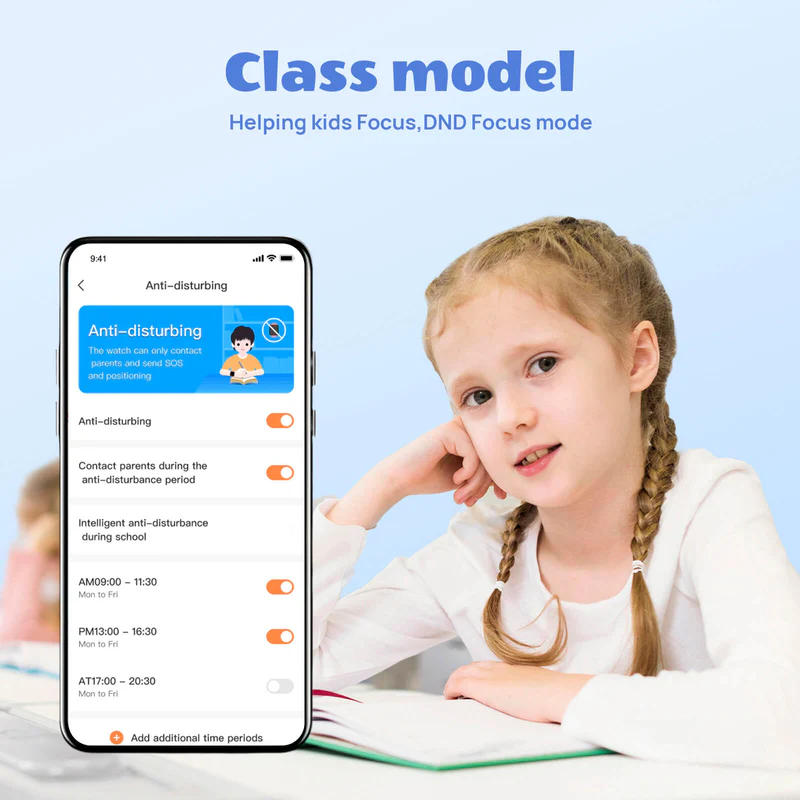 Годинник забезпечує двосторонній голосовий зв’язок і відеодзвінки через Nano-SIM. Камера 2 МП фіксує знімки та відео з точки зору дитини. Акселерометр відстежує рухи та активність, доповнюючи дані про місцезнаходження.