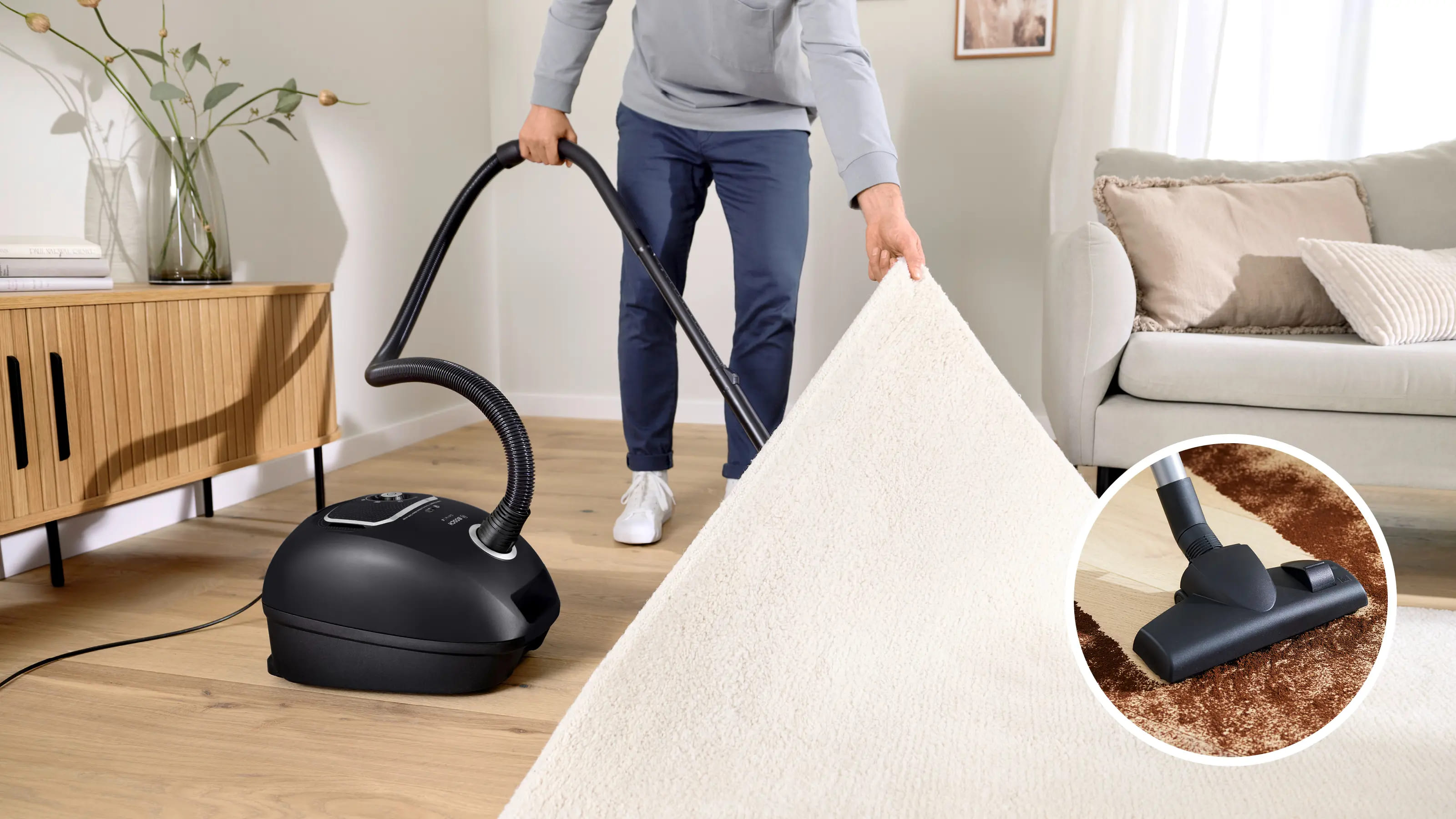 Система PowerControl забезпечує регулювання потужності залежно від типу поверхні. Універсальна насадка підлога/килим використовується для твердих покриттів і килимів.