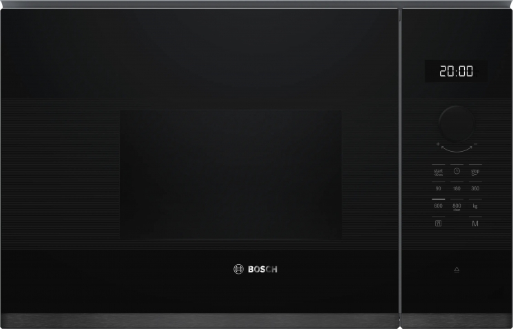 Головна - Побутова техніка, інструменти та товари для дому - Вбудовувана техніка - Вбудовувані мікрохвильові печі - Bosch - Мікрохвильова піч Bosch вбудована, 20л, електр. керув., 800Вт, дисплей, чорний/нержавіюча сталь