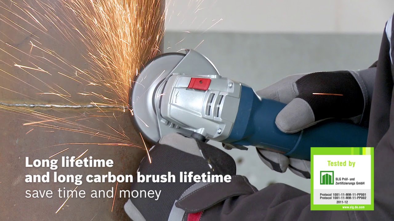 Захисний кожух обмежує розліт іскор і частинок матеріалу. Функція блокування повторного запуску запобігає самовільному ввімкненню після відновлення електроживлення. Підтримка системи пиловидалення GDE 125 EA-T Professional розширює можливості застосування в приміщеннях.