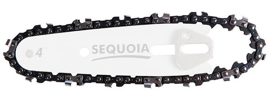 Ланцюг SEQUOIA 10 см використовується з компактними пилками та висоторізами для виконання садових робіт. Конструкція з кроком 1/4" і 28 ланками забезпечує точність різання та зручність роботи в обмежених умовах. Товщина приводної ланки 1,1 мм сприяє стабільному руху ланцюга вздовж шини. Модель розрахована на обрізання гілок і догляд за деревами.